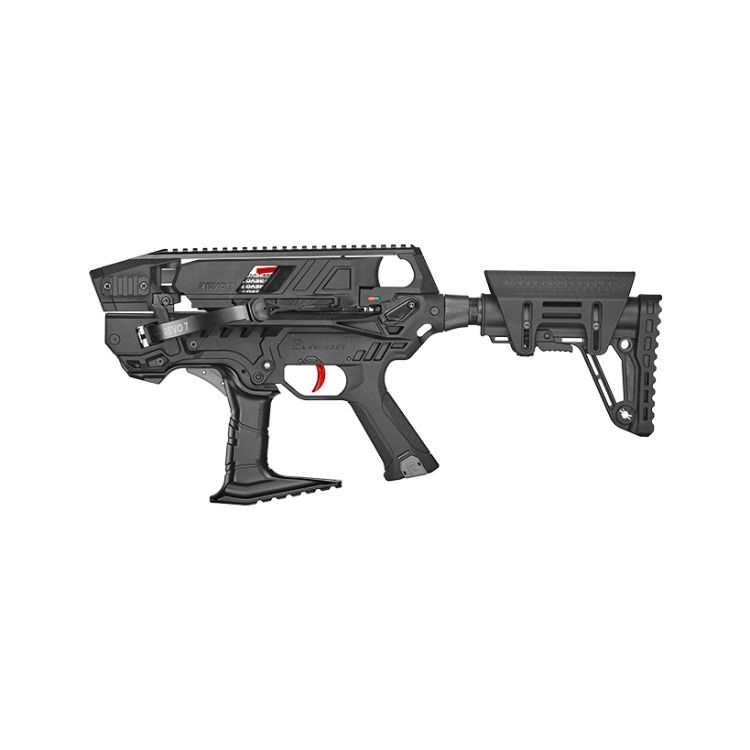 Jousessa on 90 lbs vetovastus, ja jopa 235 FPS lähtönopeus mikä riittää lyhyille ja keskipitkille etäisyyksille vaivatta. Lyhyt 5,5 tuuman power stroke varmistaa napakan laukaisun ja tarkan osuman joka laukauksella. REVO 7 lipasjärjestelmä tekee nopeasta sarja-ammunnasta helppoa ja nautinnollista, ilman jatkuvaa lataamista. Alumiininen punapistetähtäin ja säädettävä perä buffer-putkella takaavat miellyttävän ampuma-asennon ja tarkat osumat.