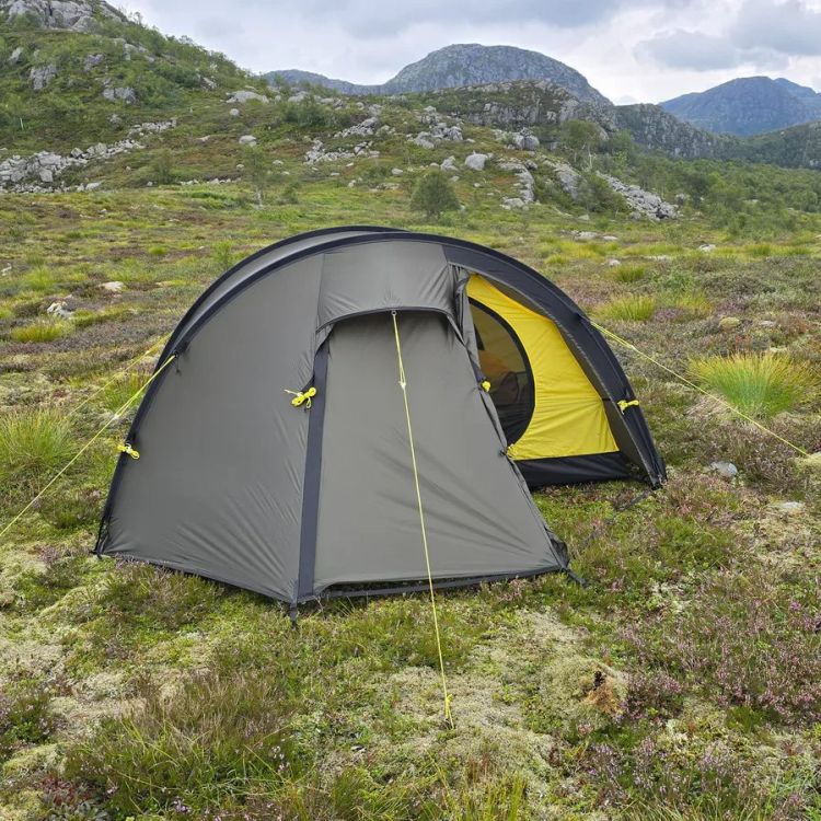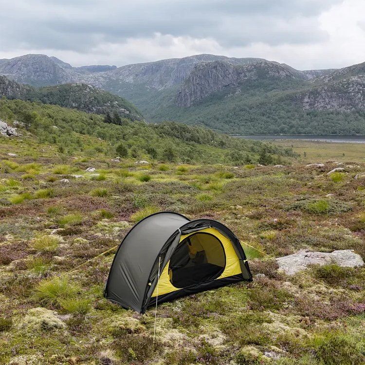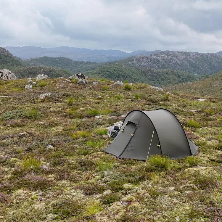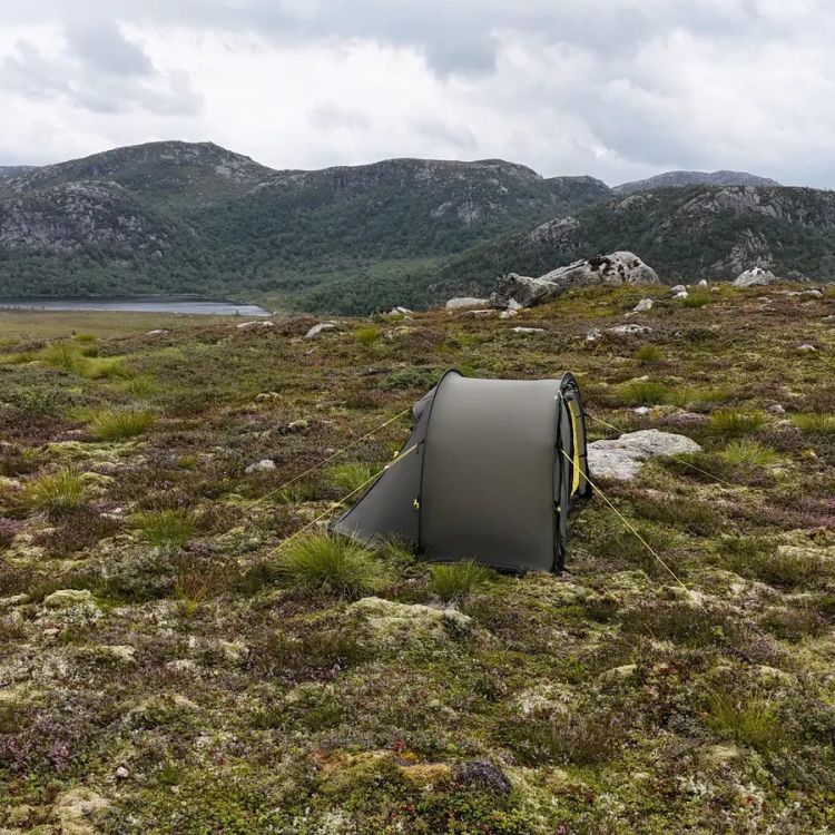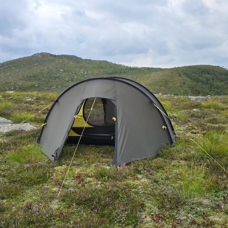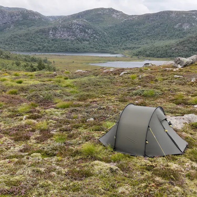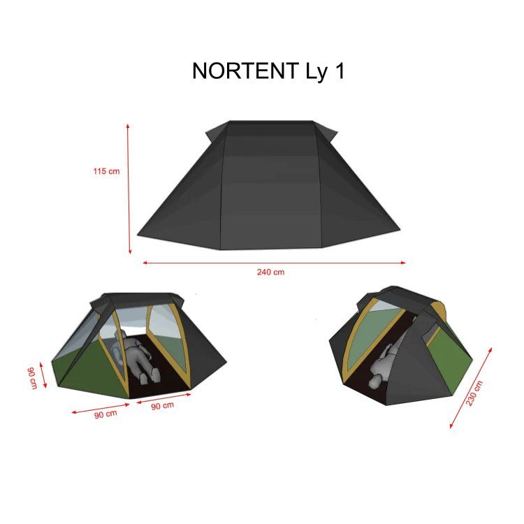 Nyt mennään NorTent Ly 1 -mallin kanssa. Tämä on vähän erilainen kuin Vern-sarja, koska Ly-sarjassa korostuu modulaarisuus ja yhteensopivuus muiden Ly-telttojen kanssa. NorTent Ly 1 on yhden hengen 4-vuodenajan tunneliteltta. Kevyt mutta poikkeuksellisen kestävä vaelluskaveri. NorTent Ly 1 on suunniteltu yksinvaeltajalle, joka tarvitsee tilavan, luotettavan ja helposti kannettavan suojan pitkiin seikkailuihin tuntureilla ja erämaissa. Aerodynaaminen muoto ja Dyneema-vahvistukset tekevät siitä teltan, johon voi luottaa sään oikkuja vastaan – olipa kyse myrskytuulista, rankkasateesta tai lumikuormasta.Ly 1 on selkeälinjainen tunneliteltta, joka nousee pystyyn 3–4 minuutissa. Kahden kaaren rakenne pitää painon kurissa, mutta antaa silti erinomaisen vakauden. Tämä tekee Ly 1:stä erinomaisen valinnan vaeltajalle, joka kulkee pitkiä matkoja ja tarvitsee luotettavan mutta kevyen yösijan. Ly 1 tarjoaa kaksi tilavaa absidia, joissa mahtuu säilyttämään repun, kengät ja ruoanlaittovälineet – ja joissa onnistuu myös kokkaaminen. Sisäteltta on mitoitettu 190 × 65 cm makuualustalle ja varusteille. Lisäksi sisällä on neljä taskua pientarvikkeille. Kuumina päivinä ovet voi pitää auki hyttysverkon suojissa, ja kylmällä säällä ne saa suljettua lämpöä säästäen.